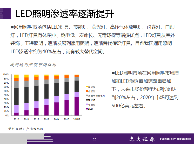 LED照明行業(yè)深層次報(bào)告總結(jié) 日期: 2017-01-09 分類: 行業(yè)資訊 標(biāo)簽:燈港照明 LED照明 上一篇: 專家詳解“原創(chuàng)設(shè)計(jì)”對企業(yè)的重要性 下一篇: 高光效的翹楚—LED隧道燈 相關(guān)文章 LED點(diǎn)光源有哪些特點(diǎn)及應(yīng)用場景? 反射型自鎮(zhèn)流LED點(diǎn)光源與傳統(tǒng)的區(qū)別(二) 反射型自鎮(zhèn)流LED點(diǎn)光源與傳統(tǒng)的區(qū)別(一) 五年內(nèi)LED點(diǎn)光源的價(jià)格難題 LED點(diǎn)光源廠商整合 中下游市場遭沖擊 歐洲LED點(diǎn)光源市場成世界發(fā)展中心 LED點(diǎn)光源廠家價(jià)格戰(zhàn)背后的原因 新型大功率LED洗墻燈越便宜銷售越多