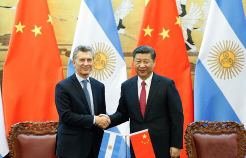 ??昨天,國家主席習近平、國務院總理李克強、全國人大常委會委員長張德江分別于馬克里會談,中阿元首還發表了《中華人民共和國和阿根廷共和國聯合聲明》,共同見證了教育、文化、農業、質檢、體育、投資、能源、鐵路和金融等領域雙邊合作文件的簽署。