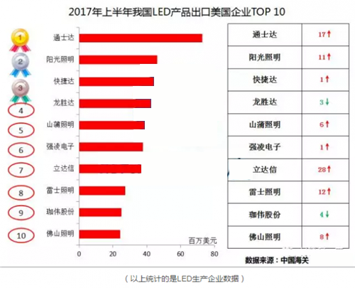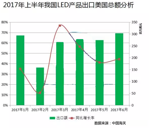 ? 當(dāng)前,中美已經(jīng)互為大貿(mào)易伙伴國,凸顯兩國經(jīng)貿(mào)關(guān)系深入發(fā)展到一個(gè)新的階段,兩國人民都從中受益良多。本期大家就跟著1°姐的視角看一看2017年上半年我國LED照明產(chǎn)品出口美國的情況。