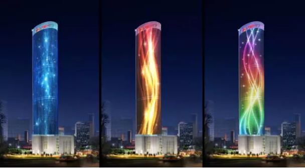 ? 此次對海航保利國際中心的燈飾升級改造,將充分利用樓宇的現有幕墻結構,在幕墻龍骨上加裝“RGB+W”LED燈具,組成一塊環形的全彩LED燈飾幕墻。同時,在樓宇側面的凹形區域,還將安裝一片LED點光源,在夜間營造出星光閃爍的效果。