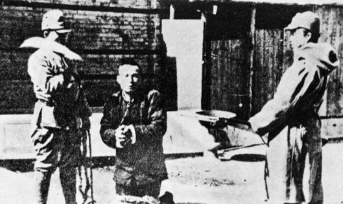 圖為南京市民被日軍捆綁刺殺。新華社發(fā)(資料照片)