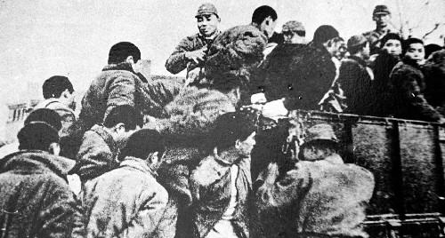 圖為日軍將大批南京青壯年捆綁后,押往郊外集體屠殺。新華社發(fā)(資料照片)